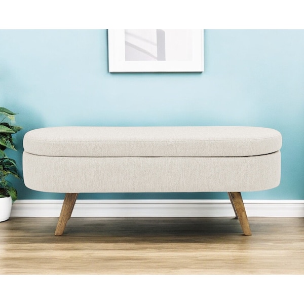 44" Beige and Brown Linen Upholstered Storage Bench with Flip Top