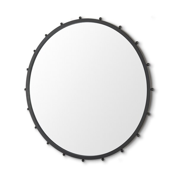 If you want to add some brightness to your living space, the 44-inch black round metal framed accent mirror is perfect for you. Framed with metal, this mirror will bring practical application and fashionable design to your space, adding some modern flair to your decor. This mirror will be a great useful addition to your home but will also help elevate the space in the room. Produced with premium quality glass for a beautiful reflection, this mirror will provide an exceptional visual experience. 43.7-inch h x 43.7-inch w x 1.18-inch d.