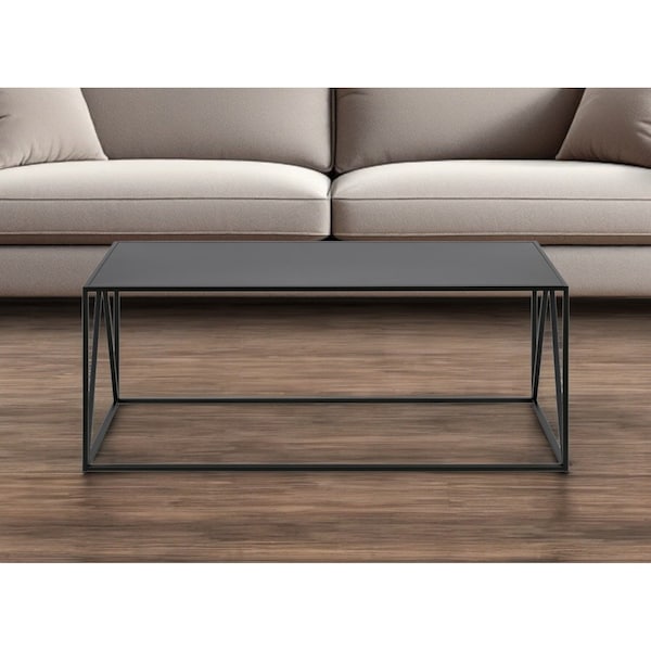 Add handsome, fashionable design to your living space with this 45-inch black steel coffee table. This table features quality construction from steel and an updated monotone color scheme with black as the main color on both the top and the base. This classic rectangular table will be a great accent in any room it has a fresh design that will definitely breathe some fresh air into your interior. This coffee table is the sturdy, reliable and stylish answer to your living room needs. 18-inch H x 45-inch W x 20-inch D