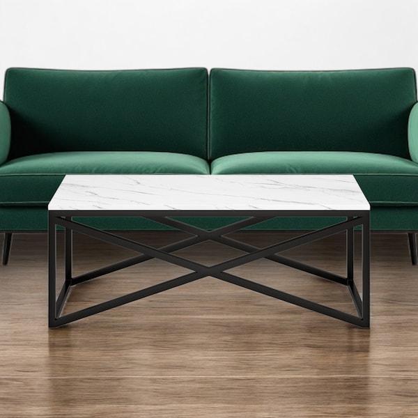 Make a statement with the 46-inch black faux marble and steel coffee table and infuse a dash of character and personality into your space. A sleek black monotone color gives this steel and faux marble table a fresh and updated look. This rectangular table is an classic yet updated way to accent your room. If you're looking for something that can fit into a living area, bedroom, or office, this coffee table is for you. This coffee table is the sturdy, reliable and stylish answer to your living room needs. 17.75-inch H x 46-inch W x 20-inch D