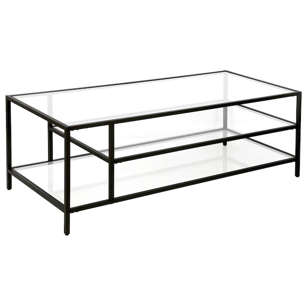 46" Black Glass And Steel Coffee Table With Two Shelves