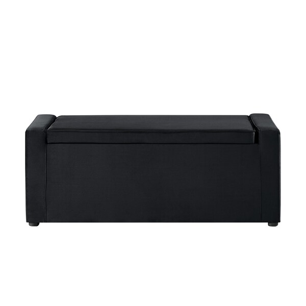 47" Black Upholstered Velvet Bench with Flip top