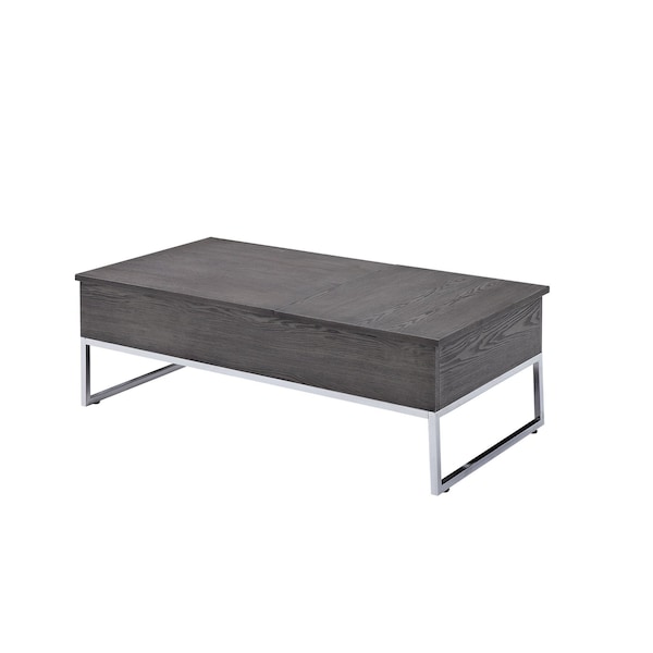 47" Gray and Silver Wood Lift Top Frame Coffee Table