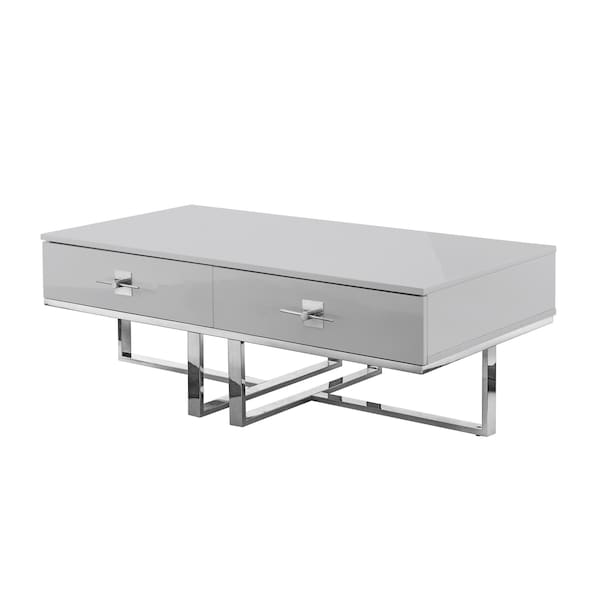 47" Light Gray And Silver Metallic Stainless Steel Coffee Table With Two Drawers