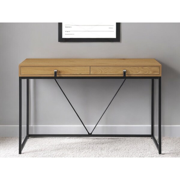 Bring this classic style 47-inch natural and black writing desk with two drawers to your living room, home office or bedroom as a practical and fashionable accent. Designed to easily fit into most spaces, this classically shaped rectangular desk will turn your room into a productive workspace. A pair of drawers gives this desk some hidden storage for your office essentials. Forged with premium craftsmanship and design, this desk is built to last. 30-inch H x 47.2-inch W x 19.7-inch D