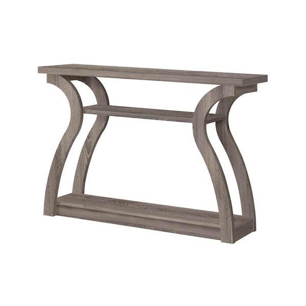 Don't settle for a boring entryway, upgrade your home with our 47-inch taupe floor shelf console table with storage today! This rectangular table is ideal for up against the wall, can free stand in a room, or sit behind the sofa perfectly. This table has a top made with taupe manufactured wood that is known for durability and easy maintenance. In addition to a great top, our console table has a high quality manufactured wood floor shelf base that is durable and easy to clean and maintain. Ideal for living rooms, bedrooms, home offices, and lounge areas, this console table is not only good looking but multi-functional and practical addition to your space. 32-inch H x 47.25-inch W x 11.5-inch D