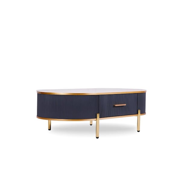 Stylish and super sturdy, the 47" charcoal gray and gold and white stone and stainless steel oval coffee table with drawer is an amazingly good looking coffee table that will compliment your living room. A charcoal gray and gold stainless steel frame is finished off with a white stone top that is the epitome of quality construction and design. This oval table is an updated take on a classic. It has a fresh design that will definitely breathe some fresh air into your interior. This coffee table is the sturdy, reliable and stylish answer to your living room needs. 15" H x 47.2" W x 23.6" D