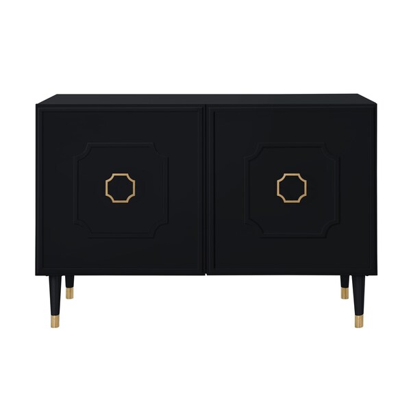 Upgrade your storage capacity with this elegant sideboard. Crafted from durable manufactured wood, this versatile cabinet combines functionality with style. Its sleek design and black color add a touch of modernity to any room, making it a perfect fit in any contemporary decor. The sideboard features shelves for organized storage, while the gold hardware finish adds a subtle touch of sophistication. With its attractive appearance and ample storage space, this sideboard is the ideal choice for enhancing both the fashion and functionality of your home. 31.9-inch H x 47.7-inch W x 18-inch D