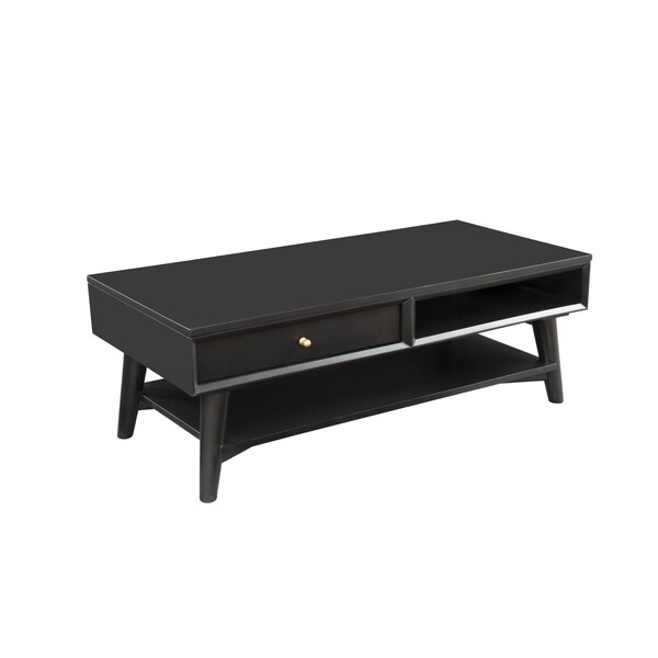 Give your living room, family room, or office the perfect anchor piece with this 48-inch black solid and manufactured wood coffee table with drawer. A sleek black monotone color gives this solid and manufactured wood and solid manufactured wood table a fresh and updated look. This classic rectangular table will be a great accent in any room if you're looking for something that can fit into a living area, bedroom, or office, this coffee table is for you. This coffee table is the sturdy, reliable and stylish answer to your living room needs. 17.5-inch H x 48-inch W x 22-inch D