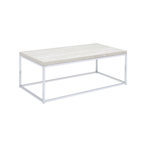 48" Chrome And White Oak Manufactured Wood And Metal Rectangular Coffee Table