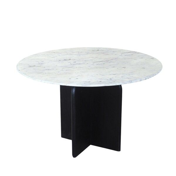 Give your room the perfect anchor piece with this 48-inch white and black marble and solid wood pedestal base round top dining table. A black solid wood frame is finished off with a white marble top that is the epitome of quality construction and design. The two-tone finish adds to it's appeal. A beautiful cross style pedestal base adds some dimension and elegance to your dining. This dining table seats 4 people comfortably. The dining table plays a central part in your home. This design is a great way for you to enjoy dining and entertaining in style. 30-inch h x 48-inch w x 48-inch d.
