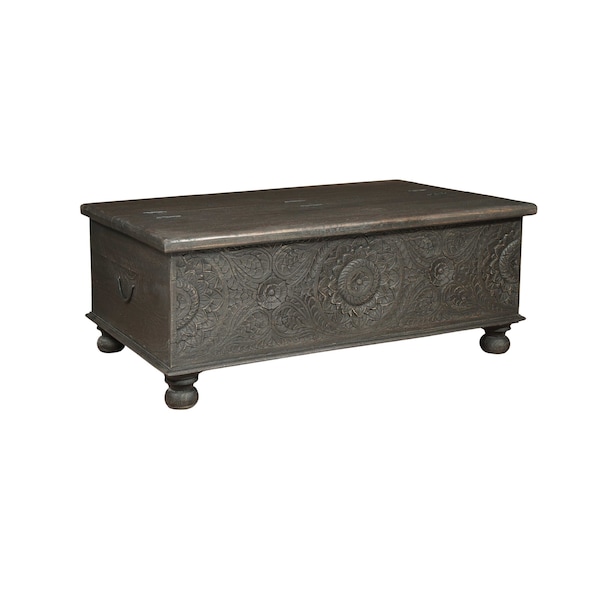 Make your living room or family room really stand out with this 49-inch black solid wood distressed lift top coffee table. Made of solid wood, the black coloration throughout gives this piece an updated and refreshing look. The purposefully distressed finish gives this table an authentically rustic feel. This classic rectangular table will be a great accent in any room if you're looking for something that can fit into a living area, bedroom, or office, this coffee table is for you. This coffee table is the sturdy, reliable and stylish answer to your living room needs. 19-inch H x 49-inch W x 30-inch D