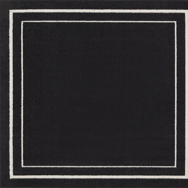 This 5-foot black and ivory square indoor outdoor area rug, is a great way to add warmth to a room. This geometric square shaped rug features a solid color that combines hue and shape for a great look. Solid colors are versatile and will blend with any existing decor style. Versatile in use, durable, and easy to maintain, this rug is an ideal solution to add a decorative and inviting touch to your indoor or outdoor space. 60-inch h x 60-inch w x 0.25-inch d.
