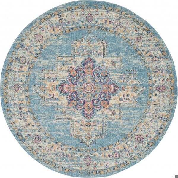 5 ft. Round Light Blue Distressed Medallion Area Rug