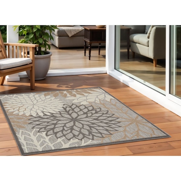5' Gray and Ivory Indoor Outdoor Area Rug