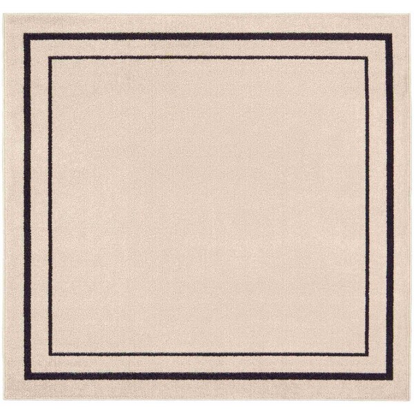 Add some artistry to your room with this 5-foot ivory and black square indoor outdoor area rug. This geometric square shaped rug features a solid color that combines hue and shape for a great look. Solid colors are versatile and will blend with any existing decor style. Makes a great way to dress up your patio, porch, or poolside, but also works well as a durable and easy to maintain option in the kitchen, family room, or mudroom. 60-inch h x 60-inch w x 0.25-inch d.