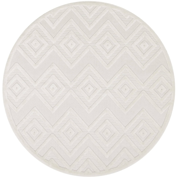 5' Ivory And White Geometric Indoor Outdoor Area Rug