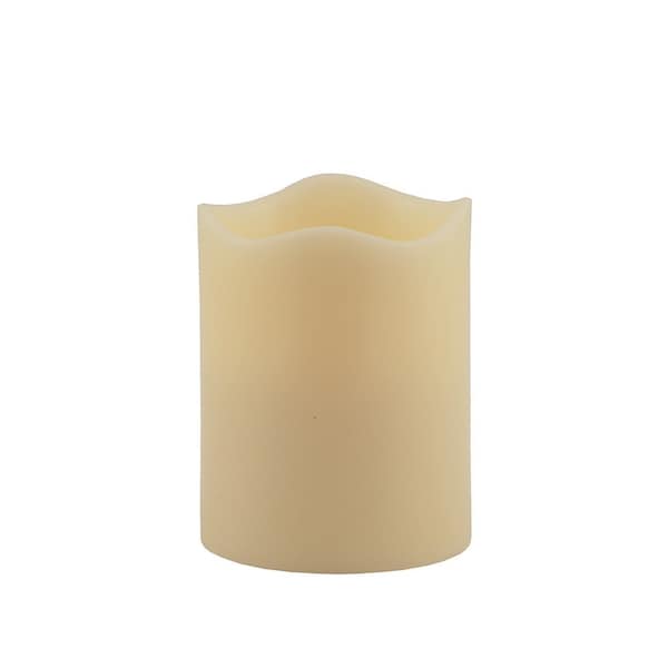 Transform your space with the radiance of this 5-inch ivory flameless pillar candle. The classic, cylindrical shape makes this pillar candle a versatile addition to any decor style, whether it's traditional, contemporary, or modern. Indulge in the authentic charm of beeswax. Using modern technology, this flameless candle gives mesmerizing ambiance of a flickering candle. Let the warm glow of candlelight create an intimate and welcoming ambiance for your guests or a soothing atmosphere for yourself. 5-inch H x 4-inch W x 4-inch D