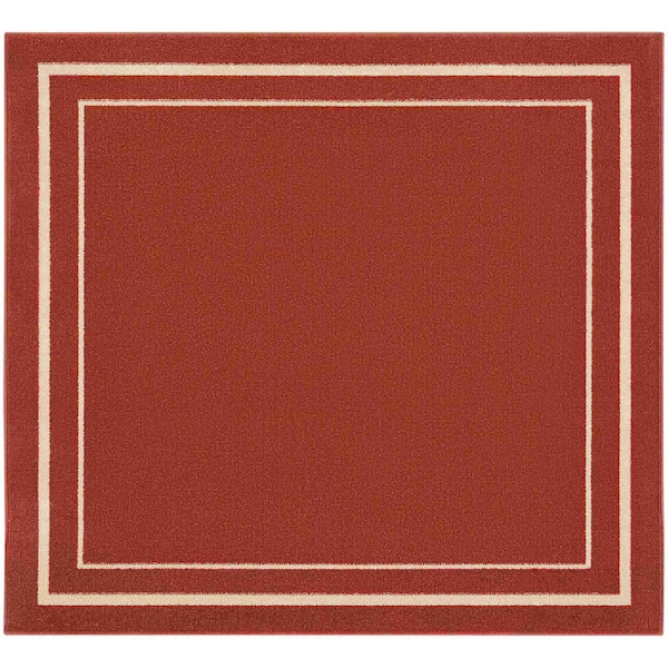 Add great coloration and comfortable texture to your space with this 5-foot red and ivory square indoor outdoor area rug. This geometric square shaped rug features a solid color that combines hue and shape for a great look. Solid colors are versatile and will blend with any existing decor style. Makes a great way to dress up your patio, porch, or poolside, but also works well as a durable and easy to maintain option in the kitchen, family room, or mudroom. 60-inch h x 60-inch w x 0.25-inch d.