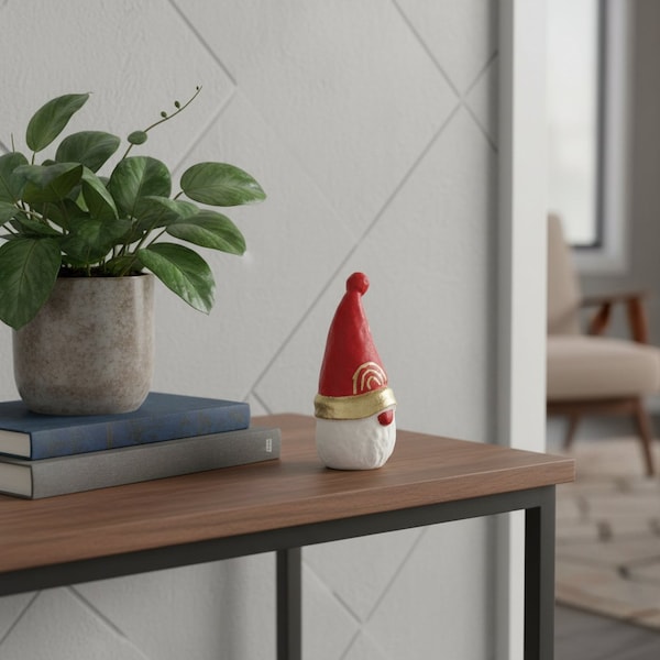 This 4.5-inch red gold and white cast iron Christmas Santa gnome figurine is the perfect way to celebrate and decorate for the holidays. Great to use on its own or mix with other decorations for the perfect look. Each piece is meticulously hand painted, ensuring a unique finish that adds charm to your seasonal decor. Crafted from durable cast iron, this standing gnome sculpture radiates a festive spirit that captures the essence of the holidays. Its purposeful distressing enhances its vintage appeal, making it a delightful addition to any collection. 4.50-inch h x 2.25-inch w x 2.00-inch d.