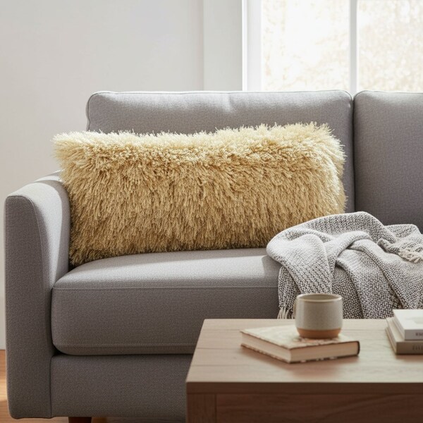 Bring a bit of fashion and zip to your space with this eye-catching and comfy 5-inch x 20-inch yellow shag bolster throw pillow. This soft and durable decorative pillow is expertly made of high grade, long lasting shag in a yellow coloration. This soft polyester filled pillow not only is decorative but made to be comfy and cozy all day long. For anyone that loves to decorate or accent their space with color and texture. A great decorative accessory to add color and dimension to your favorite chair, accent your sofa, or to use as part of your bed ensemble. 5-inch h x 20-inch w x 5-inch d.