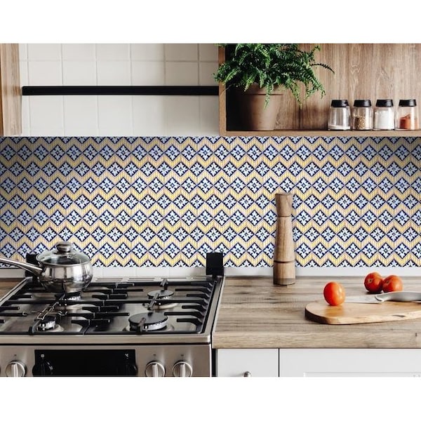 5 x 5 in. Blue Yellow Zig Peel & Stick Tiles