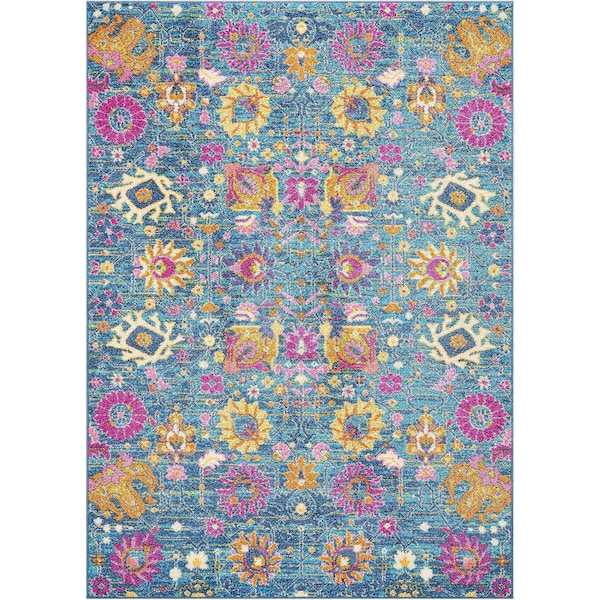 5 x 7 ft. Denim Blue Florals Distressed Area Rug