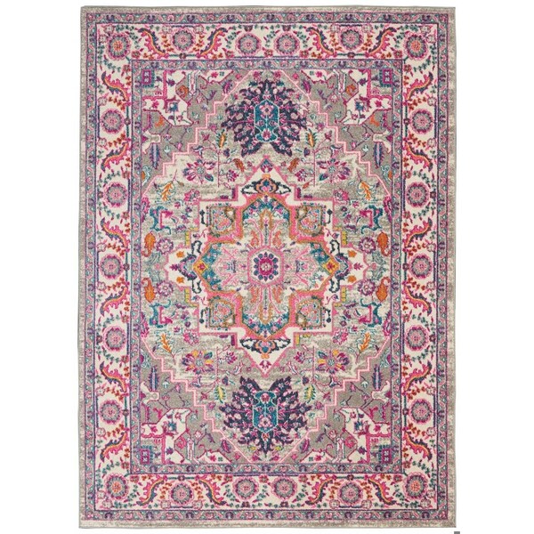 5 x 7 ft. Light Gray & Pink Medallion Area Rug