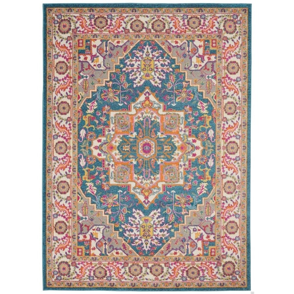 5 x 7 ft. Teal & Pink Medallion Area Rug