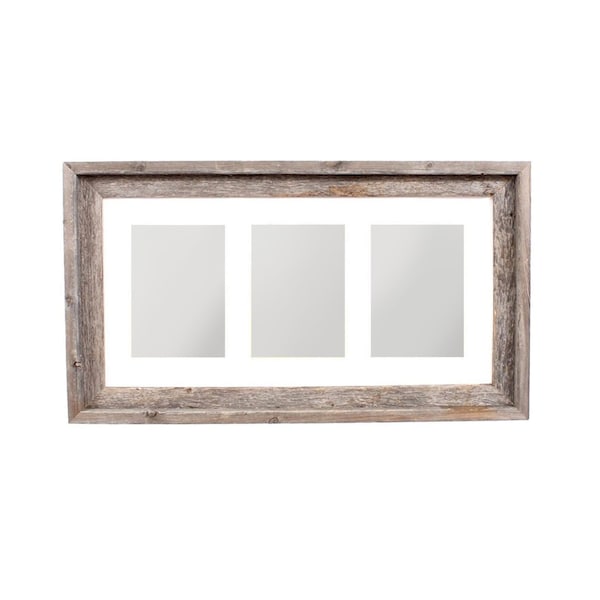 The 5-inch x 7-inch natural distressed reclaimed wood hanging picture frame with mat adds a rustic charm to your home decor. Crafted from reclaimed wood, this frame offers a unique, eco-friendly element to your space. It features a versatile design that accommodates both horizontal and vertical orientations. The white mat enhances the visual appeal, allowing your cherished memories to stand out beautifully. With a capacity for three pictures, you can create a stunning collage or showcase your favorite moments. The reliable sawtooth hanger makes installation a breeze, ensuring your artwork or photos are displayed securely. Elevate your interior design with this elegant and functional picture frame that complements any room style effortlessly. 23.00-inch h x 13.00-inch w x 2.00-inch d.