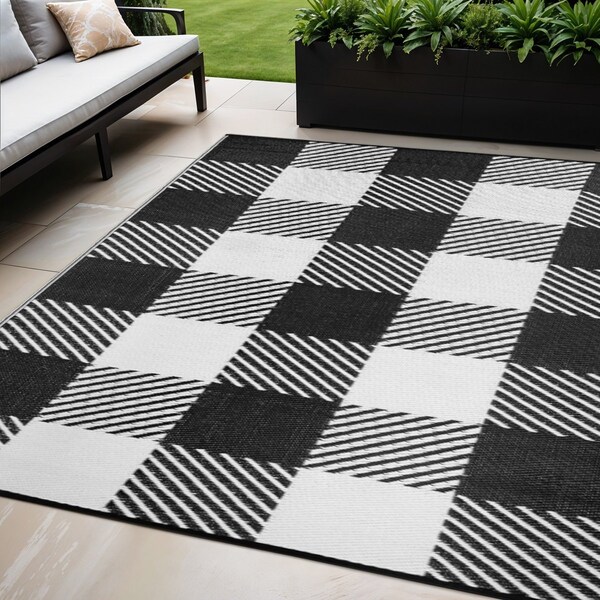 5' X 8' Black Geometric Indoor Outdoor Area Rug