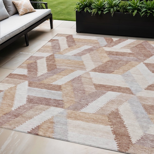5' X 8' Copper Geometric Washable Indoor Outdoor Area Rug