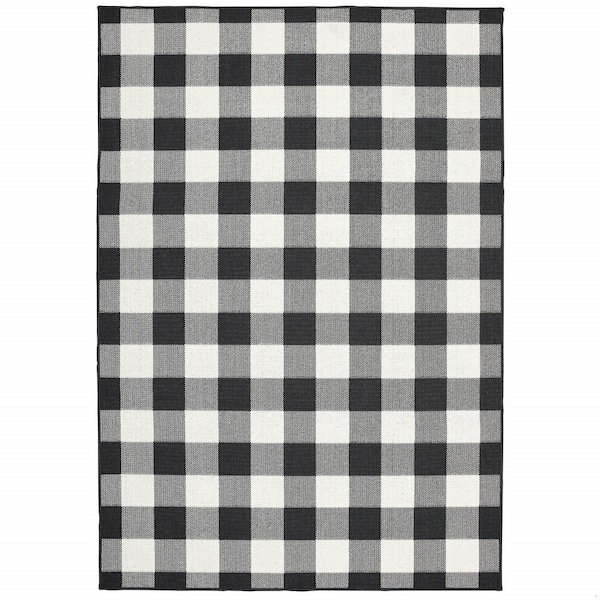 5 x 8 ft. Black & Ivory Gingham Indoor & Outdoor Area Rug
