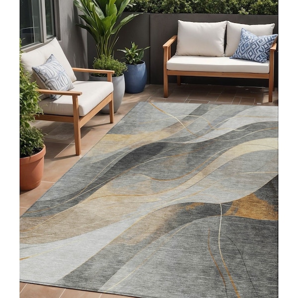 Set an inviting tone in your space with this 5-foot x 8-foot gray silver and rust abstract washable indoor outdoor area rug. This rectangle shaped rug features a abstract design that will work well both indoors or out. A classic shape marries with good looking design for your living room, hall, bedroom, porch, patio, or poolside. Ideal for outdoor spaces or high traffic areas with kids and pets, this rug is made from heavy duty polyester that is stain resistant to help repel water, dirt, and stains. Makes a great way to dress up your patio, porch, or poolside, but also works well as a durable and easy to maintain option in the kitchen, family room, or mudroom. 60-inch h x 90-inch w x 0.19-inch d.