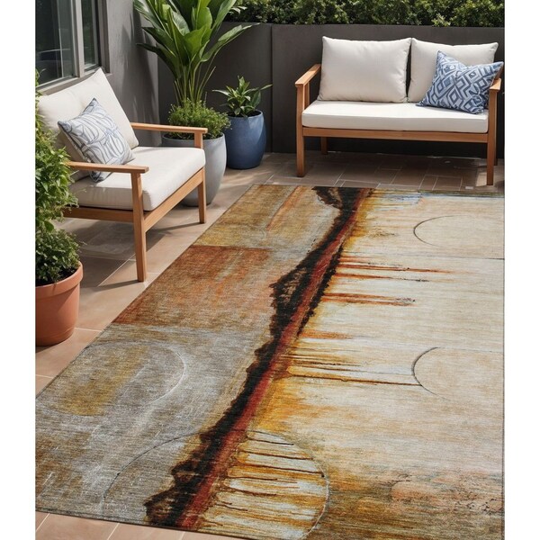 This 5-foot x 8-foot rust and charcoal abstract washable indoor outdoor area rug, is a great way to add warmth to a room. This rectangle shaped rug features a abstract design that will work well both indoors or out. A classic shape marries with good looking design for your living room, hall, bedroom, porch, patio, or poolside. Ideal for outdoor spaces or high traffic areas with kids and pets, this rug is made from heavy duty polyester that is stain resistant to help repel water, dirt, and stains. Makes a great way to dress up your patio, porch, or poolside, but also works well as a durable and easy to maintain option in the kitchen, family room, or mudroom. 60-inch h x 90-inch w x 0.19-inch d.