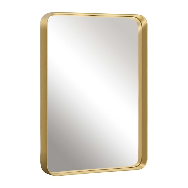 Elevate your space with this classic gold metal framed standing mirror, boasting a vertical orientation and a sleek rectangle shape. The 31.833 inches width ensures a generous reflection area while the leaning mount type adds a contemporary touch. Crafted from metal in a luxurious gold finish, this standing mirror exudes casual elegance and style. The sturdy frame design not only enhances the mirror's aesthetic appeal but also provides durability. Perfect for dressing rooms, bedrooms, or entryways, this mirror effortlessly complements various decor themes with its timeless charm and sophisticated allure. Add a touch of glamour and functionality to your home with this exquisite gold standing mirror. 49.91-inch H x 31.83-inch W x 1.96-inch D