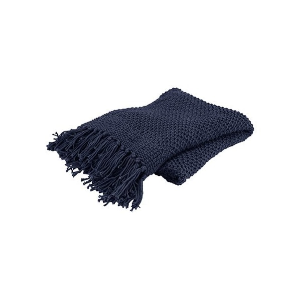 This 50-inch x 50-inch indigo woven cotton throw blanket is an essential for any cozy abode. Features a woven solid color design that offers sumptuous softness and texture that you'll cherish for years to come. Made from cotton this blanket will make a great addition to any room it's added to. Add extra texture to your decor and turn your room into an inviting space. This cozy throw blanket makes the perfect add-on to movie nights and lazy afternoons. 50-inch H x 50-inch W x 0.5-inch D