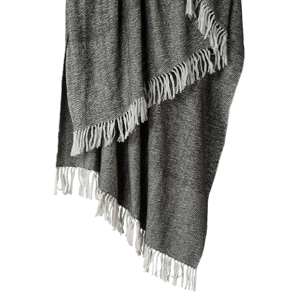 This 50-inch x 60-inch black and white chevron cotton throw blanket is a stylish addition to any sofa. Handmade by true artisans, this good looking throw will elevate its surroundings with its genuine and artisanal style. Features a woven chevron design that offers sumptuous softness and texture that you'll cherish for years to come. Made from cotton this blanket will make a great addition to any room it's added to. Add extra texture to your decor and turn your room into an inviting space. Perfect for your favorite chair, bed or lounging on the couch, this blanket helps bring a warm and fashionable flair to your space. 60.00-inch h x 50.00-inch w x 0.20-inch d.