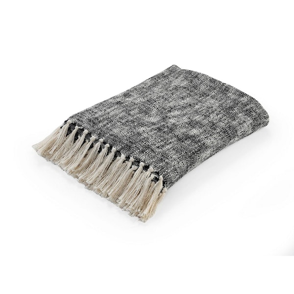 This 50-inch x 60-inch black and white woven cotton throw blanket with fringe is a stylish addition to any sofa. Features a woven solid color design that offers sumptuous softness and texture that you'll cherish for years to come. Made from cotton this blanket will make a great addition to any room it's added to. Add extra texture to your decor and turn your room into an inviting space. This cozy throw blanket is sure to become your go-to couch companion. 60-inch H x 50-inch W x 0.2-inch D