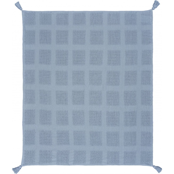 This 50-inch x 60-inch blue woven cotton throw blanket with tassels brings a classic, refined style to your space. Features a woven solid color design that offers sumptuous softness and texture that you'll cherish for years to come. Made from cotton this blanket will make a great addition to any room it's added to. Add extra texture to your decor and turn your room into an inviting space. This cozy throw blanket is sure to become your go-to couch companion. 60-inch H x 50-inch W x 0.2-inch D