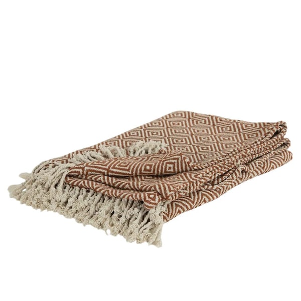Whether you're curling up for movie night or you need an extra layer of warmth as you drift off to sleep, this 50-inch x 60-inch brown cotton woven geometric throw blanket with fringe is the perfect solution. Hand woven by true artisans, this good looking throw will elevate its surroundings with its genuine and artisanal style. Features a woven geometric design that offers sumptuous softness and texture that you'll cherish for years to come. Made from cotton this blanket will make a great addition to any room it's added to. Add extra texture to your decor and turn your room into an inviting space. This cozy throw blanket makes the perfect add-on to movie nights and lazy afternoons. 60.00-inch h x 50.00-inch w x 0.20-inch d.