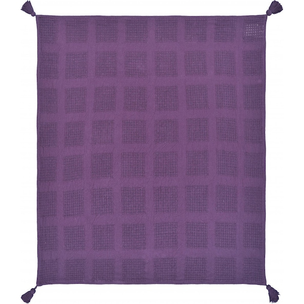 This 50-inch x 60-inch purple woven cotton throw blanket with tassels brings a classic, refined style to your space. Features a woven solid color design that offers sumptuous softness and texture that you'll cherish for years to come. Made from cotton this blanket will make a great addition to any room it's added to. Layering your furnishings with a decorative throw has the ability to awaken a tired living room or elevate the design of your bedroom simply by providing elements of color and texture that weren't there before. This cozy throw blanket makes the perfect add-on to movie nights and lazy afternoons. 60-inch H x 50-inch W x 0.2-inch D