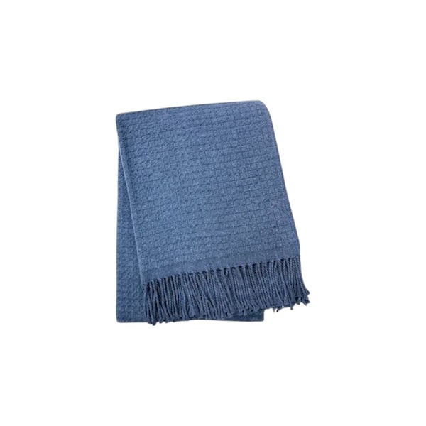 This 50-inch x 67-inch denim blue cotton blend woven throw blanket with fringe is the perfect accent you've been searching for. This woven throw offers sumptuous softness and texture that you'll cherish for years to come. Made from cotton blend this blanket will make a great addition to any room it's added to. Add extra texture to your decor and turn your room into an inviting space. This cozy throw blanket is sure to become your go-to couch companion. 67-inch h x 50-inch w x 1-inch d.