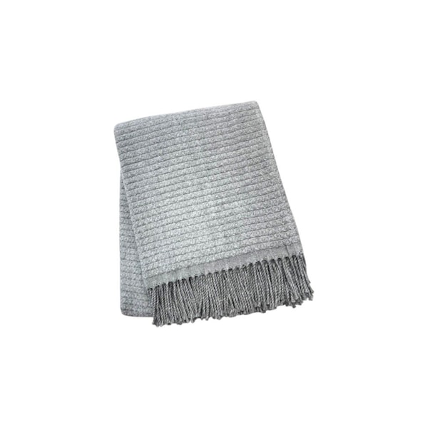 50" X 67" Gray Cotton Blend Woven Throw Blanket with Fringe