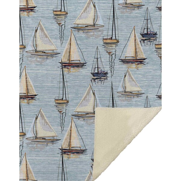 This 50-inch x 70-inch beige ivory and sky blue sailboat microfiber plush throw blanket is a stylish addition to any sofa. This plush throw is cozy soft beyond belief and oh-so-giftable. Features a fun coastal sailboat design that offers sumptuous softness and texture that you'll cherish for years to come. Made from microfiber this blanket will make a great addition to any room it's added to. Add extra texture to your decor and turn your room into an inviting space. This cozy throw blanket is sure to become your go-to couch companion. 70.00-inch h x 50.00-inch w x 0.50-inch d.