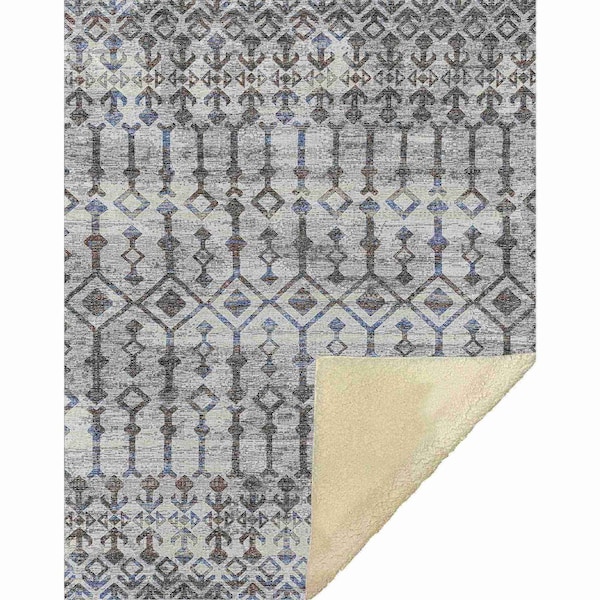50" X 70" Charcoal And Gray Geometric Microfiber Plush Throw Blanket