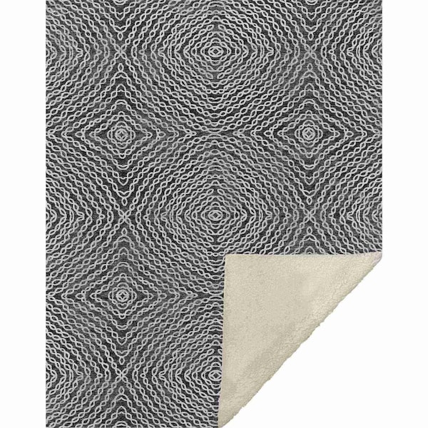 50" X 70" Charcoal And Ivory Abstract Microfiber Plush Throw Blanket