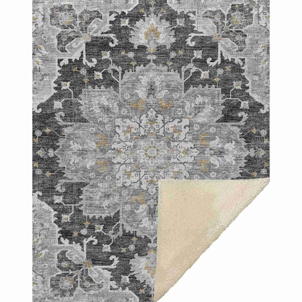 50" X 70" Charcoal Gold And Gray Floral Microfiber Plush Throw Blanket