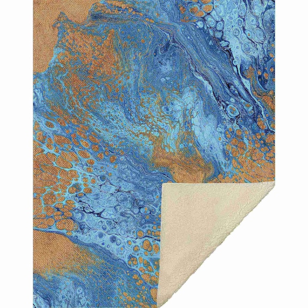 50" X 70" Cobalt And Copper Abstract Microfiber Plush Throw Blanket