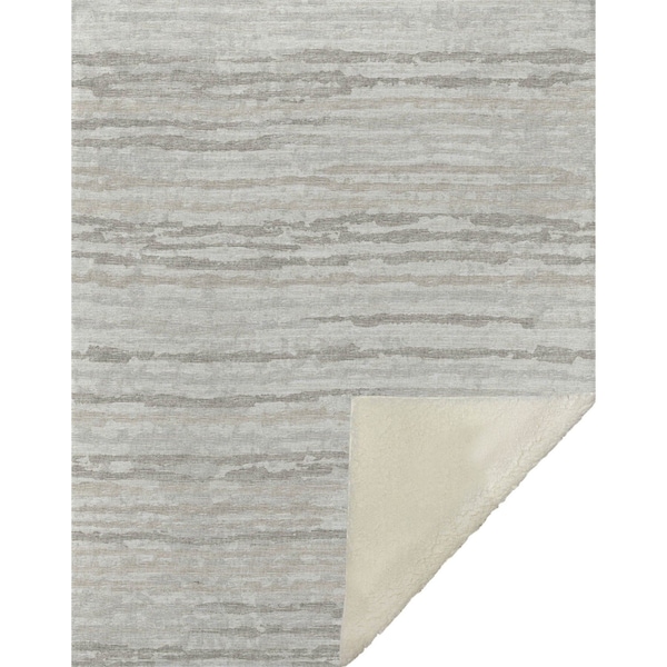 50" X 70" Ivory And Taupe Striped Microfiber Plush Throw Blanket